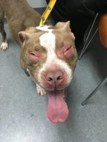 Upon seeing the dog, it was immediately apparent Butters had suffered severe injuries to her eyes, face, and head. Both of her eyes were severely swollen and bright red. She had a laceration on her right cheek and left leg. Her owner admitted he “whooped” Butters that morning out of anger because she had gone to the bathroom on the carpet.